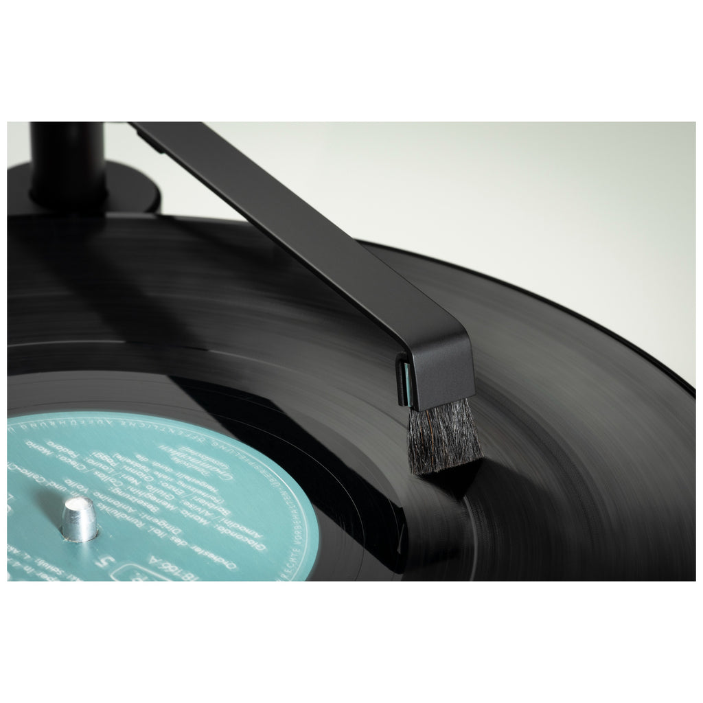 Sweep it E is made out of durable and resistant aluminium to make sure it lasts a long cleaning-life. With the heavy weight base it stands firmly on your turntable. The uni-pivot arm follows the grooves of your record and cleans them effectively. When you don‘t need Sweep it E you can simply put the arm on its dedicated arm-rest for a comfortable placement. The soft hair-brush guarantees that the records won‘t be harmed during the cleaning process.