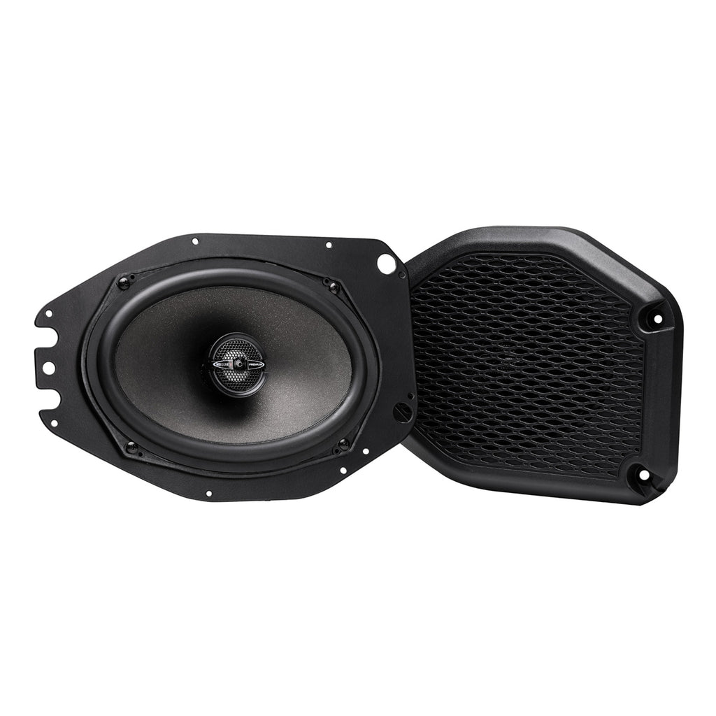 Two 6x9 inch coaxial speakers, 1 inch magnesium dome tweeters with removeable phase lens: Lightweight yet durable pop paper cone with mica blend. |