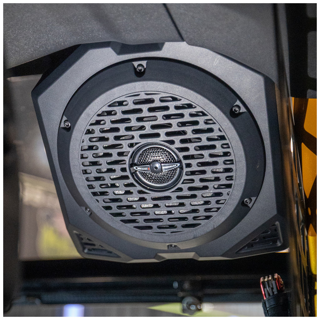 Rear pillar mounted speaker enclosures (Raptor Trims require the additional purchase of MBQBRO-RAPB rear speaker brackets)