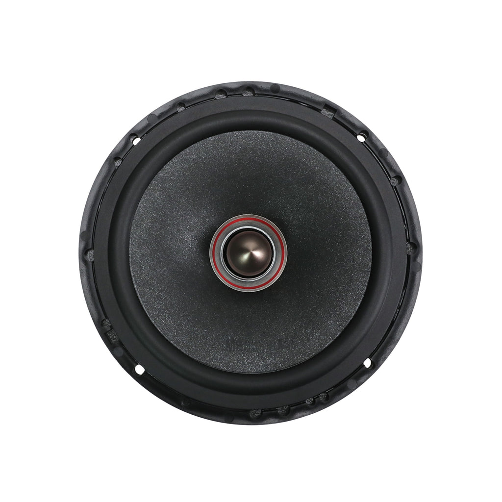 Two 6.5 inch coaxial speakers with 1 inch magnesium dome tweeters.