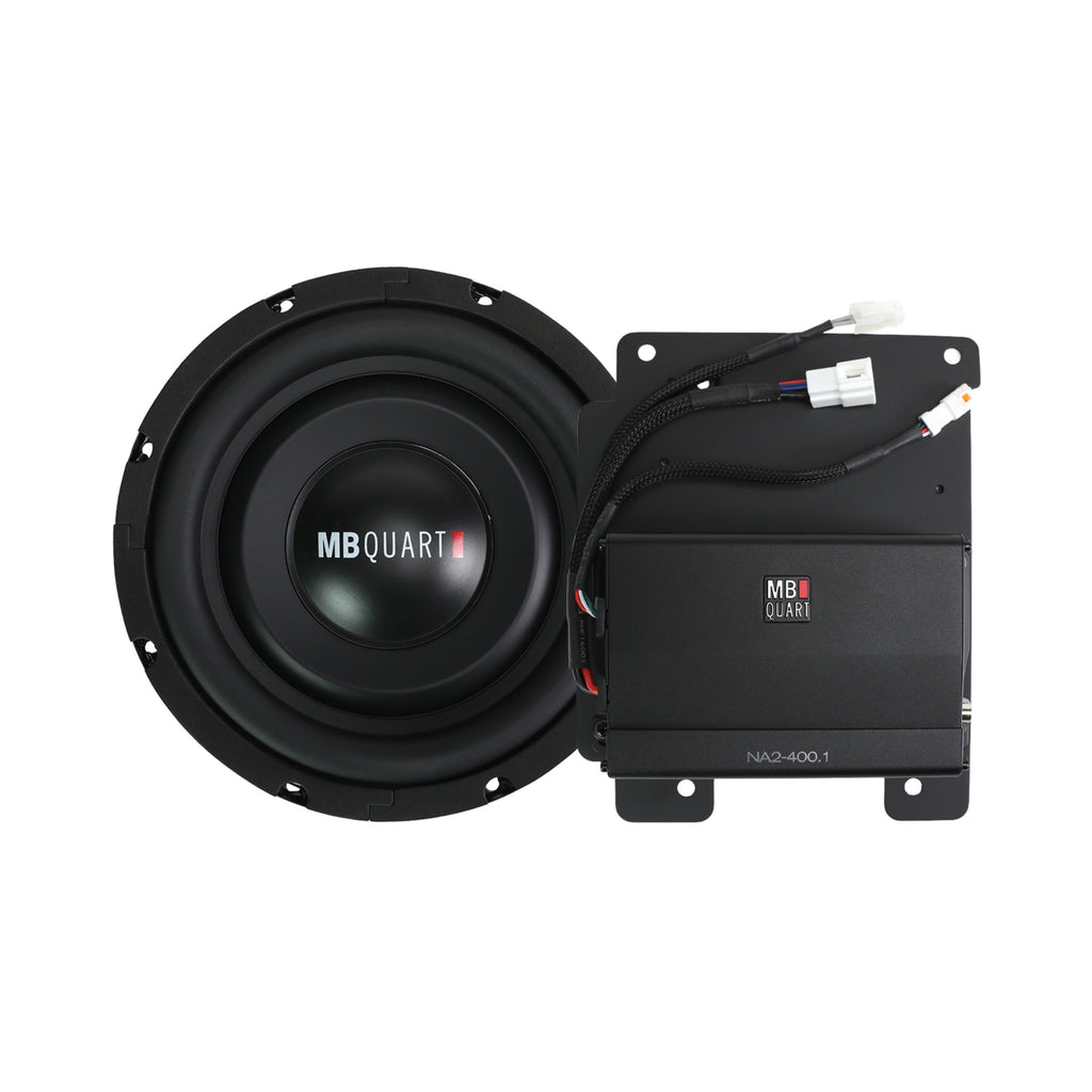 MB Quart MBQBRO-SUBR-1 Ford® Bronco® 2021-2026 Tuned Audio Package: 8 inch subwoofer upgrade system powered by a 400 watt Class-D amplifier. This system upgrades the OEM B&O audio subwoofer.