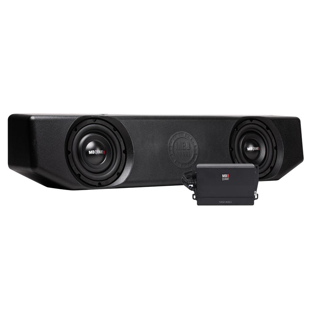 MB Quart MBQJT-SUBA-1 Jeep® Gladiator (JT) Tuned Audio Package: Dual 8 inch underseat subwoofer system powered by a 400 watt Class-D amplifier. MOPAR Part #: 68727430AA