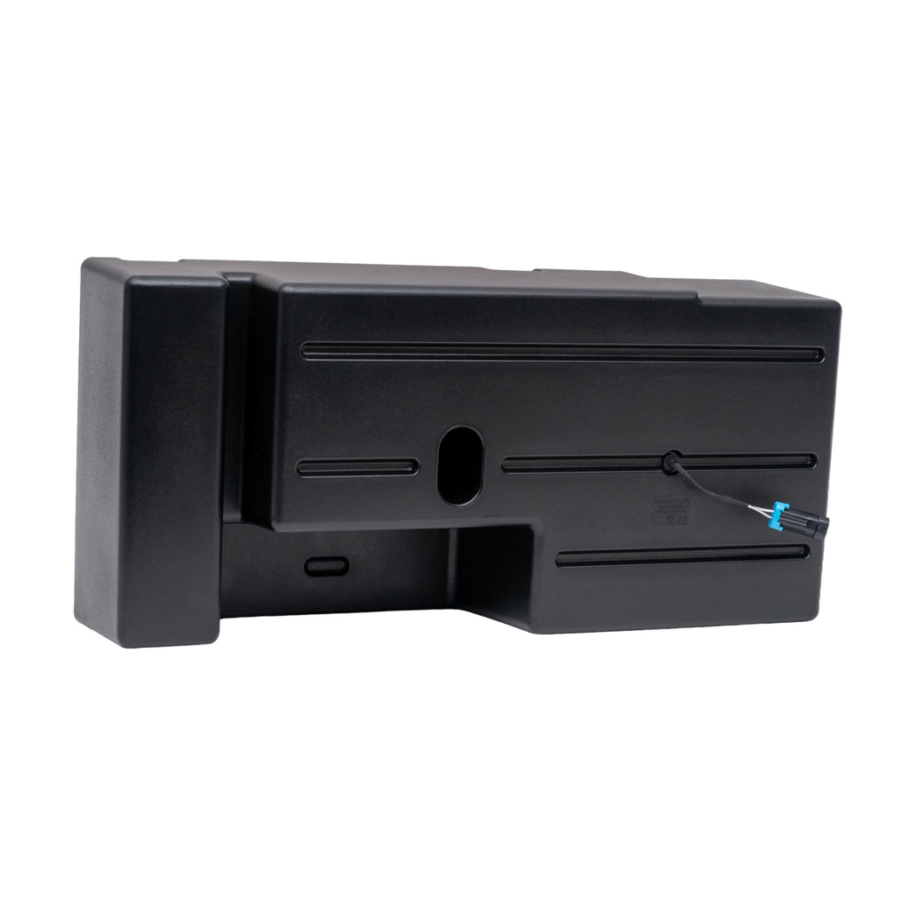 Polaris RANGER (1000 Model Only) 2020-Current UTV Tuned Audio Package: 400 Watt RANGER 1000 Specific Subwoofer System includes 10 inch dual 2-ohm subwoofer, RANGER specific under front passenger & middle seat sealed subwoofer enclosure, and 400 watt Class-D compact powersports subwoofer amplifier.