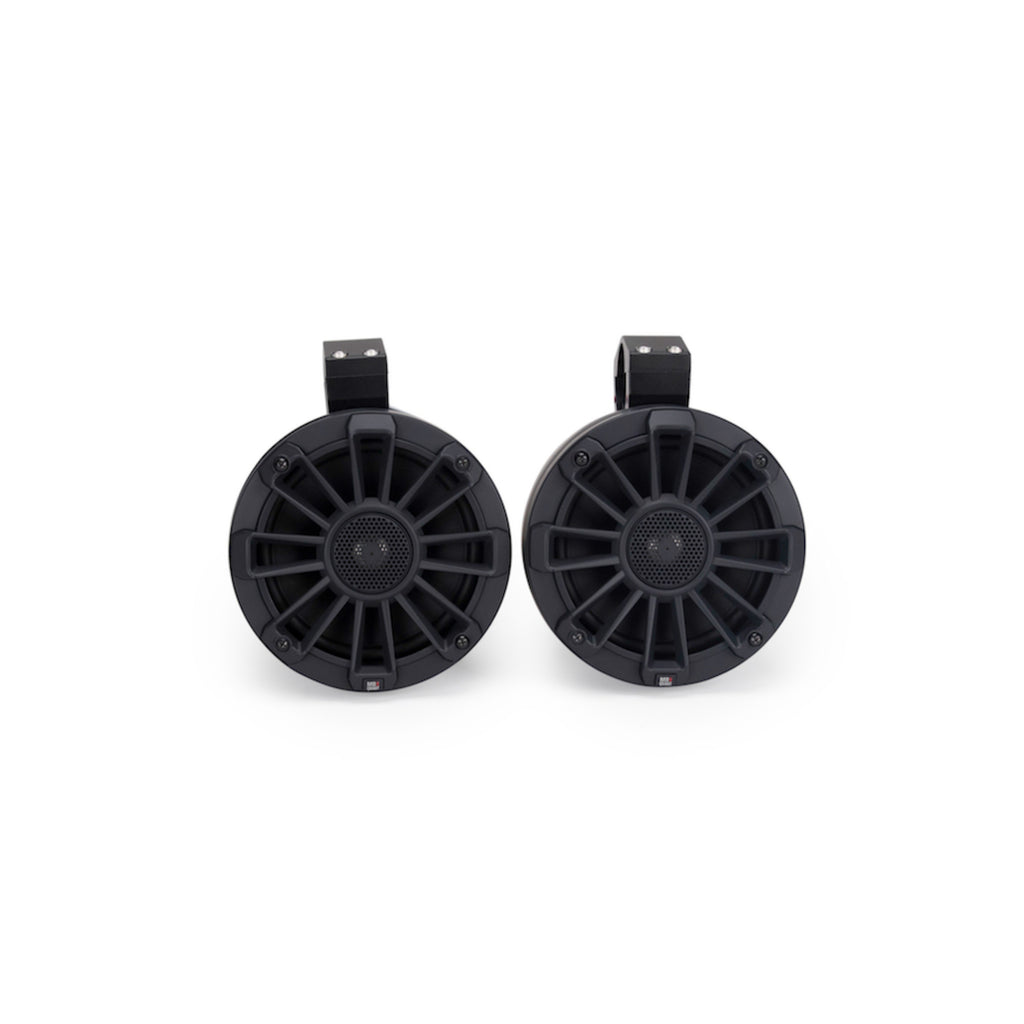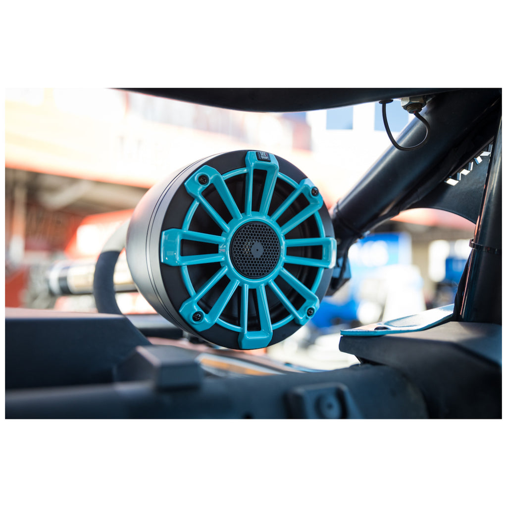The front speakers are meticulously engineered to fit in the X3 dash. They include a 1"" Titanium Dome Tweeter that will deliver natural sounding high frequency response, while producing high volume. Injection molded composition Polypropylene cone produces impactful bass with minimal cone flex. The Composite (UV Resistant ASA+Fiberglass) frames are incredibly strong and lightweight. The entire assembly earns an IPX68 rating which makes it as indestructible as the X3. The rear (Pod) speakers are the exact speaker as the front but mounted in a pair of versatile shallow mount enclosure with the included swivel mounts for perfect alignment to the listener regardless of the roll cage angle.