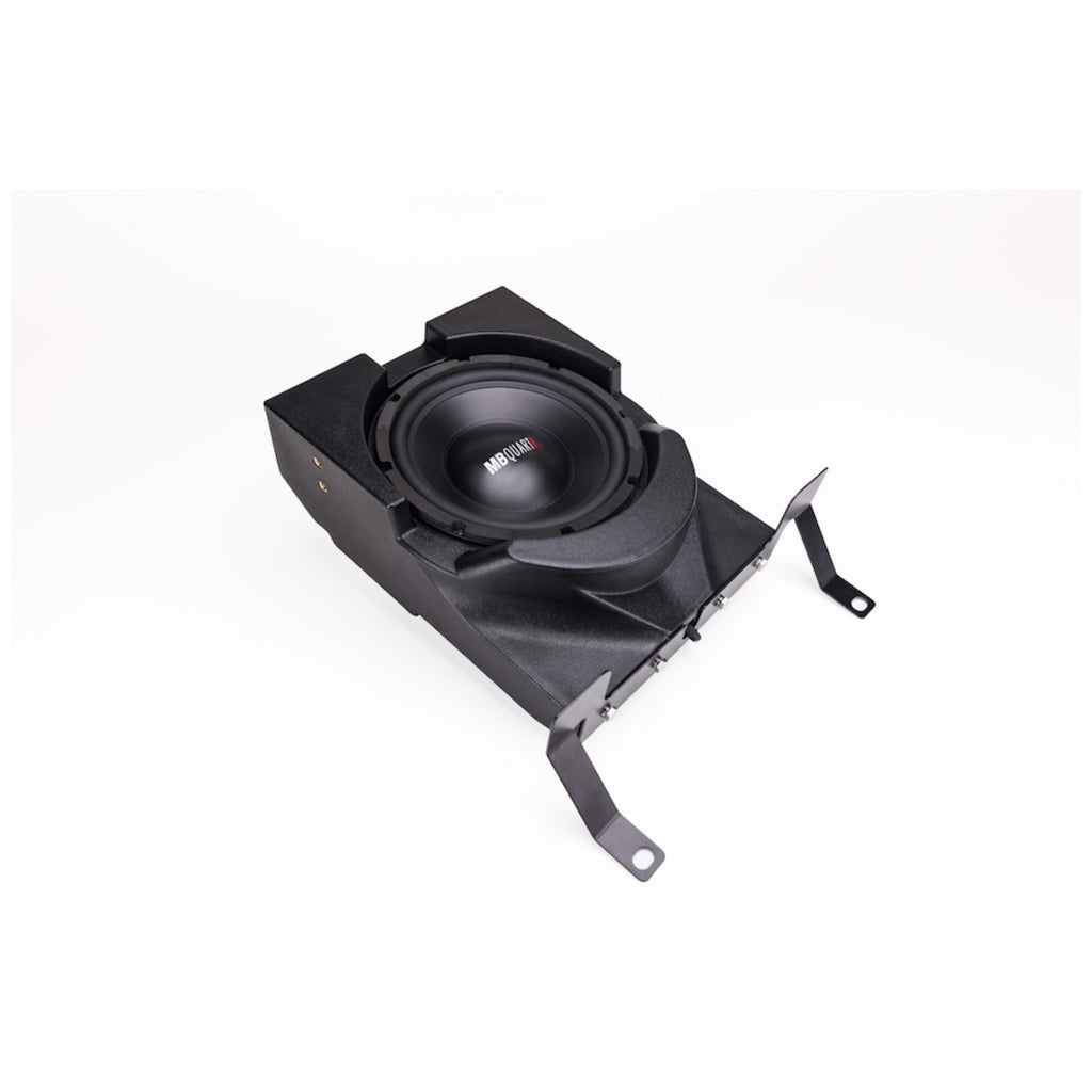 Dual Voice Coil 10 Inch Subwoofer in a High Impact HDPE Composite Under Seat Enclosure. MBQX-SUB-2: 10 inch, Dual 4 ohm Subwoofer, Maverick X3 Specific Under-Seat subwoofer enclosure, 400 watt Class D, Compact Powersports Subwoofer Amplifier.