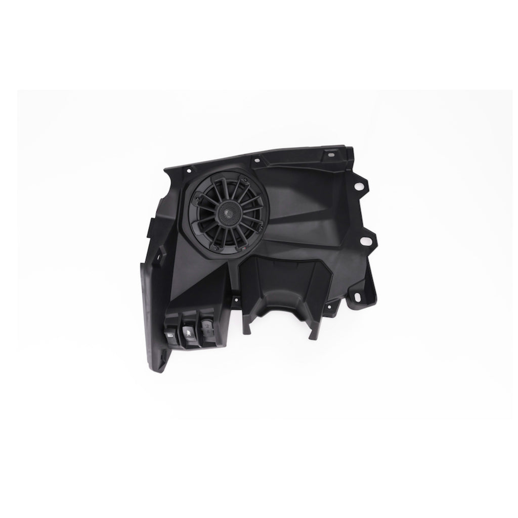 The 6.5 components are the NP1-116 two way speakers. The left speaker panel is Smart-Lok™ Diff Model capable and retains all factory mounts for ECU's. No relocation brackets or customization required. MBQX-POD-1: 6.5 Inch 2 Way Composite Coaxial Speakers, right and left speaker dash panels for 6.5 inch speakers, easy installation, 400 Watt Two Channel Class D, Compact Powersports Amplifier.