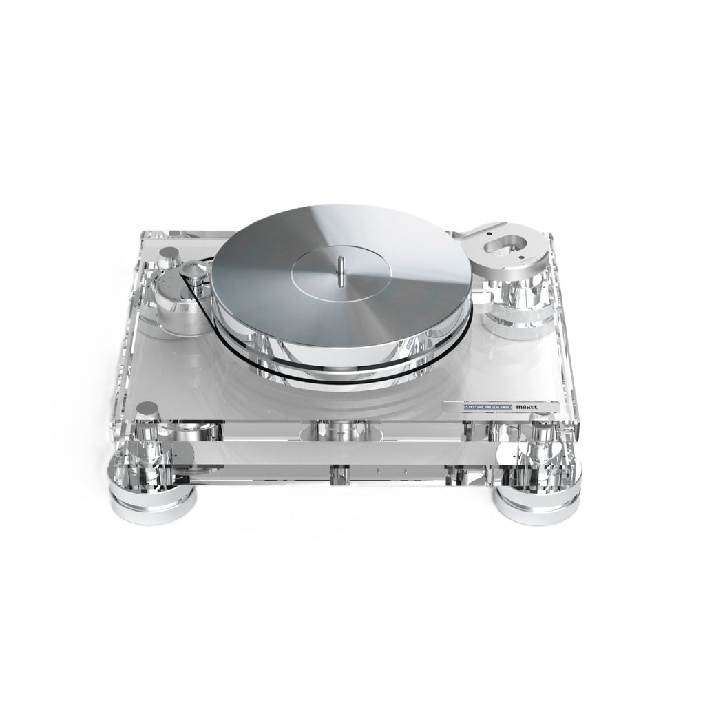 Antony Michaelson‘s idea of music was big scale, warm and mighty with details in colours. His amplifier creations are a rare expression of this sound character. In 2002 Antony asked Mr. Lichtenegger to help with a design with all these attributes. Also, the design was very important and should match the mechanically stunning amplifiers. The Musical Fidelity M1 was born and a great success. The base idea was to combine the inert mass of metal alloys with zero resonating acrylic. The motor was effectively decoupled from the tonearm and platter with the dual chassis construction. The new M8xTT is following the same design philosophies with even more expressive technical features.
